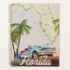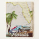 Schöne illustrierte Karte des Staat von Florida und der Inseln in der Region in einem schönen Vintagen Stil mit einem Retro-Auto der 50er Jahre.
