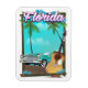 Das Florida Retro Reiseplakat mit klassischer Akustik-Gitarre und klassischem Sea-Schaumgrün-Auto.