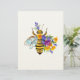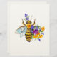Artistically drawn, flower, honey bee with contrasting colors, yellow, bright, blooming california poppy and blue wild plants on white background.