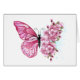 Flower arrangement of pink butterfly with pink Japanese cherry blossoms on white background.