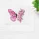 Flower arrangement of pink butterfly with pink Japanese cherry blossoms on white background.