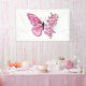 Flower arrangement of pink butterfly with pink Japanese cherry blossoms on white background.