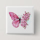 Flower arrangement of pink butterfly with pink Japanese cherry blossoms on white background.