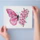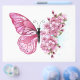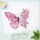 Flower arrangement of pink butterfly with pink Japanese cherry blossoms on white background.