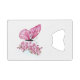 Flower arrangement of pink butterfly with pink Japanese cherry blossoms on white background.