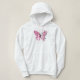 Flower arrangement of pink butterfly with pink Japanese cherry blossoms on white background.