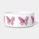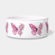 Flower arrangement of pink butterfly with pink Japanese cherry blossoms on white background.