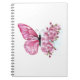 Flower arrangement of pink butterfly with pink Japanese cherry blossoms on white background.