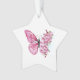 Flower arrangement of pink butterfly with pink Japanese cherry blossoms on white background.