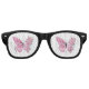 Flower arrangement of pink butterfly with pink Japanese cherry blossoms on white background.