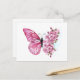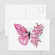 Flower arrangement of pink butterfly with pink Japanese cherry blossoms on white background.
