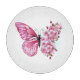 Flower arrangement of pink butterfly with pink Japanese cherry blossoms on white background.