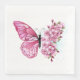 Flower arrangement of pink butterfly with pink Japanese cherry blossoms on white background.