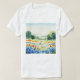 The painting depicts an open field with blue, orange, and yellow flowers in the foreground.