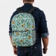 Flower Pattern orange Swirl Berry on Turquoise - Bedruckter Rucksack