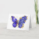 Jewelry, blue, sapphire, sparkling flower butterfly with wing decorated with blue, precious flowers with gold leaves on white background.