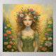 Dieses skurrile Poster zeigt eine süße junge, ruhige Hexe, die einen geheimen Blumengarten erforscht, den sie gerade entdeckt hat. Fertiggestellt in einer Ölfarbe Kunstdruck.