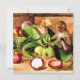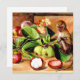 Flowers and Fruit of the Mangosteen and a Singapore Monkey, colorful painting by Marianne North.