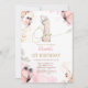 This first birthday invitation with watercolor butterflies, flowers, and pink stripes is perfect for your little wild one!