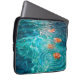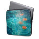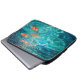 The image shows a serene scene of orange flowers floating on the surface of clear, turquoise water. Concentric ripples emanate from each flower, creating a dynamic pattern on the water's surface. The water reflects light, creating a shimmering effect with varying shades of blue and green. The overall mood is peaceful and tranquil, evoking a sense of calm and natural beauty.