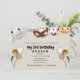 Einladung eines jungen Jungen zum Geburtstag. Tiere pinkeln oben. Tierballons.