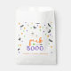 Haben Sie eine Babydusche zu Halloween-Themen? Diese niedlichen "flüchtige Blick a BOOO" Babyduschtüten sind bezaubernd! Mama und Baby Ghost sind umgeben von lila, orangen, grünen und schwarzen Halloween-Konfetti mit Fledermäusen, Geistern, Hexenstiefeln und Bonbons. Leicht zu bearbeiten für Ihr eigenes Halloween Thema Baby Shower!