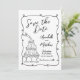 Handgezeichnete Fun Swirling Frame Save the Date Karte. Diese skurrile und kreative Save the Date-Karte eignet sich ideal für Paare, die ein spielerisches, leichtes Set für ihre kommende Hochzeit suchen. Die in Schwarz und Weiß gestaltete Karte zeigt einen wirbelnden Rahmen mit charmanten Herzdetails, die Ihre Hochzeitsinformationen umkreisen. Sie präsentiert sich in einer reizvollen Mischung aus Drehbüchern und handgeschriebenen Schriftart für ein lässiges und elegantes Ambiente. In der links unteren Ecke befindet sich ein gläserner Champagnerturm mit einer Champagnerflasche, die oben bläserndes Schwitzen hervorbringt und eine lebhafte und feierliche Touch verleiht. Dieses sonderbare Detail verbindet sich wunderbar mit dem wirbelnden Rahmen und schafft so ein einzigartiges und unvergessliches Design. Auf der Rückseite der Karte findet man einen süßen Akzent, ein handgeschriebenes Monogramm der Initialen des Paares, begleitet von einer bezaubernden Skizze aus Champagnerflasche und Glas, die das Thema miteinander verbindet. Dieses Design ist vollständig anpassbar und eignet sich ideal für Paare, die etwas trendig, stilvoll und mit Persönlichkeit gewollt haben. Erhältlich in gedruckter oder als herunterladbare digitale Datei für einfache Freigabe oder Lokaldruck.