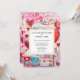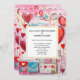 Hochzeitseinladung mit einem skurrilen Muster. Scrapbook Stil Doodles und Skripte. Rote und rosa Herzen und verschiedene Briefe und Umschläge verstreut herum.