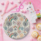 Rainbow and Dandelions Paper Plate - Ein spielerisches, nahtloses Muster mit Regenbögen, Lüstern und Wildblumen in sanften Pastelltönen in Rot, Blau und Orange auf einem beruhigenden grauen Hintergrund. Ideal für Naturliebhaber, Bodystil-Liebhaber und für diejenigen, die fröhliche und aufregende Designs genießen. Ideal für Frühling, Sommer, Geburtstage und skurrile Veranstaltungen.