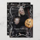 Schwarz-Weiß Whimsikhand Skelettkastenrahmen Halloween Foto Holiday Card gezeichnet.