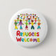 Refugees Welcome bietet eine Vielzahl von Menschen in einer freundlichen Gruppe mit den Worten "Refugees Welcome" unten. Ein Design, um Neuankömmlinge zu begrüßen und sicherzustellen, dass Vertriebene sich willkommen fühlen.