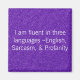 Set auf einem lila Glitzer wie Hintergrund sagt einfach: "Ich bin fließend in drei Sprachen - Englisch, Sarcasm, & Profanity"