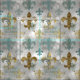 Fluer de Lis motif in weichem Blau und Gold-Muster mit bedrückter Textur und Pastellkreideart.
