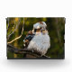 Das lachende Kookaburra ist sofort erkennbar, sowohl im Absturz als auch in der Stimme. Er ist im Allgemeinen weißlich unten, mit dunkelbraunen und braunen auf der Rückseite und den Flügeln leicht verbargen. Der Schwanz ist lauter, weithin mit Schwarz versperrt. Durch das Gesicht ist ein auffälliger, dunkelbrauner Augenstreifen sichtbar. Es ist eines der größeren Mitglieder der Königsfischer Familie.