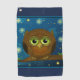 Adorable flauschig braune Eule sitzend auf einem Zweig eines Baumes. Der Hintergrund ist ein Nachthimmel voller hellgelber Sterne. Die Eule im Vordergrund sieht die Nacht mit ihren großen runden, gelben Augen ab. Mit seinen kleinen braunen Klauen am Zweig festhalten. Ein wunderschönes digitales Kunstwerk von C.Katt, ideal für Tiere oder Vogelliebhaber mit einer besonderen Liebe für Eulen.