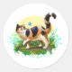 Fluffy Calico Katze mit Schmetterling Runder Aufkleber