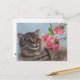 Fluffy Cat und 3 rosa Rosen Postkarte