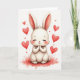 Designed with a fluffy white young rabbit centered on the front, this illustration keeps the focus on its round face, long pale ears with a soft pink blush, and tiny paws held together as if savoring a sweet moment 🐰. Its eyes are closed with fine lashes, rosy cheeks, and a small curved smile that suggests a quiet, affectionate bond, like it’s holding a warm thought close. Creamy whites and gentle shading give the fur a plush look, while a light crimson wash spreads beneath to anchor the scene. Red hearts in several sizes float around the rabbit, adding a romantic, friendly atmosphere without crowding the space 🐇. The overall background stays light and airy, letting the white figure and red accents stand out clearly. A short Easter greeting sits near the top in soft red lettering, with a smaller line beneath in a lighter pink tone. Around the rabbit, the hearts drift upward over the pale backdrop, with the deepest red gathered closest to the center.
