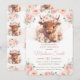 Fluffy Highland Cow Pink Blush Floral Baby Dusche Einladung
