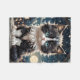 Gezeichnet flauschiges Kätzchen mit neugierigen Augen vor dem Hintergrund des Nachthimmels
