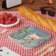 Fluffy Kitten mit Blue Bow im Konditorladen Pappteller