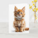 Das süße, langhaarige Ingwer Kätzchen mit blass blauen Augen auf dieser weißen Grußkarte.
