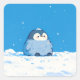Fluffy Penguin Sitting in Winter Snow Quadratischer Aufkleber