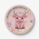 Fluffy Pink Highlands Scottish Cow Pappteller