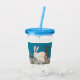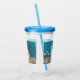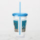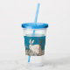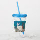Dieser Acryl-Drink-Trommel mit Stroh und Deckel hat ein flauschiges weißes Kaninchen, das auf dem Boden zwischen weißen und orangefarbenen Blume auf blauem Hintergrund sitzt.