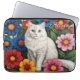 Fluffy White Cat and Folk Art Flowers Laptopschutzhülle