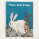 Dieser Planer ist blau mit einem flauschigen weißen Kaninchen, das auf dem Boden in großen Pflanze mit orangefarbenen Blätter und Blume sitzt. Passen Sie Ihren Text mit der Vorlage an.
