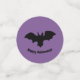 Eine Fledermaus auf lila Konfetti. Frohe Halloween!