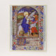 Der Flug nach Ägypten Christliche Kunstleuchtung aus einem mittelalterlichen Prayerbook zeigt den Flug der Heiligen Familie nach Ägypten, gepaart mit dem Schriftsatz
