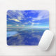 Eine weite, verworrene Sicht auf Wasser und Himmel, die den Eindruck vermittelt, über Wasser zu fliegen, vielleicht in einem dieser aus Körpererlebnissen. Ein 3D-CGI-Design.